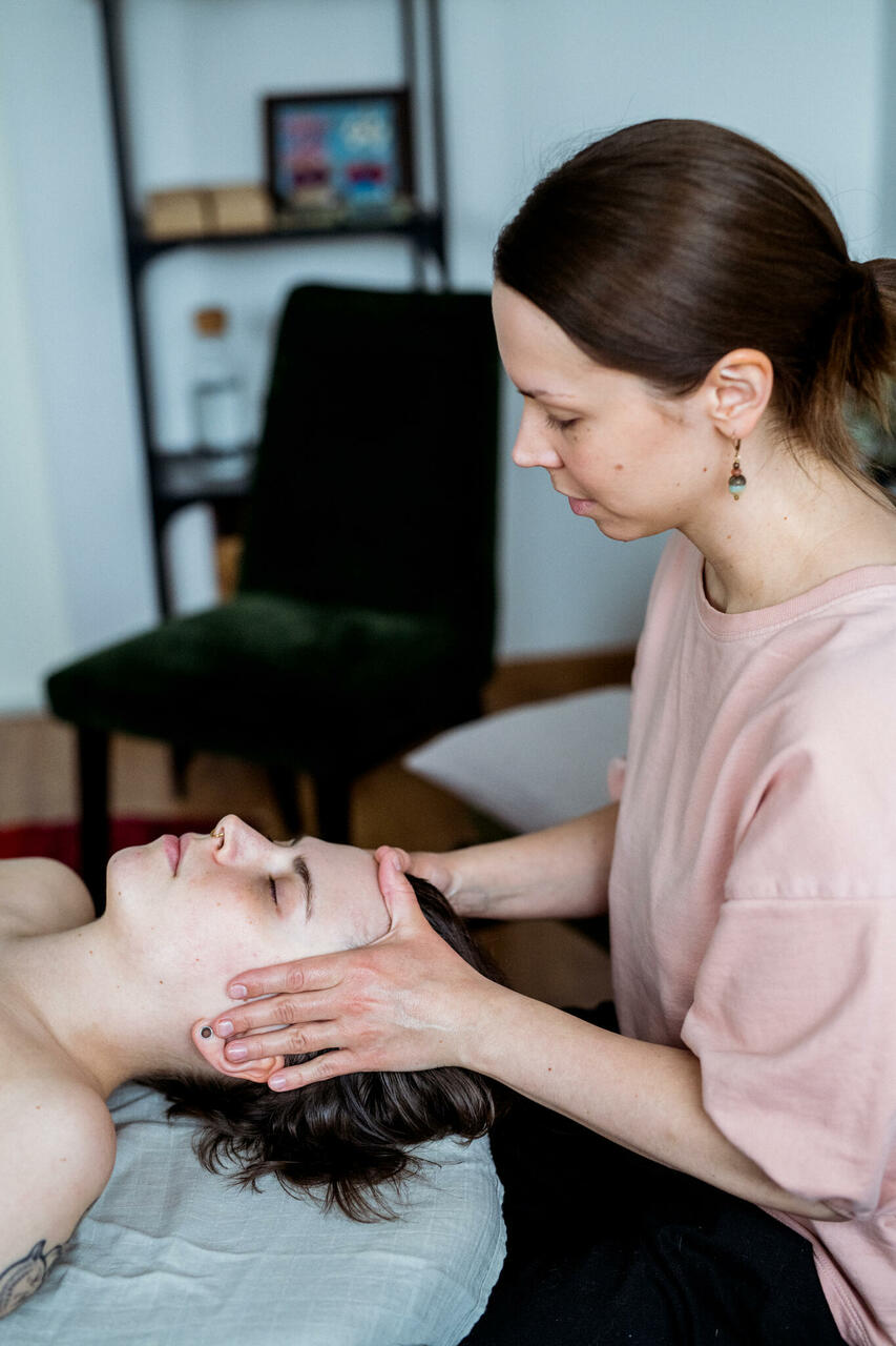 The Kobido facial massage is done with jojoba oil, and after the massage, your hair may be oily (which is beneficial, as jojoba oil restores and strengthens hair). If you need to be active after the session and oily hair is an issue, I can use a headband or disposable cap during the session.